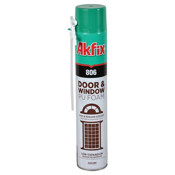 Shkumë AKFIKS, 850 ml, për dyer dhe dritare me një komponent kundër lageshtirës. Shkumë poliuretani vetë-zgjeruese. Projektuar për përdorim të lehtë me anë të një adaptori të përfshirë në paketim. Nuk përmban gaz të dëmshëm për shtresën e ozonit. Vetitë: ngjitje të shkëlqyer dhe kapacitet mbushës të lartë, rezistente në temperaturë të lartë dhe izoluese ndaj zhurmave. Kapacitet montimi dhe stabilitet të shkëlqer. Ngjit në të gjitha llojet e materialeve të ndërtimit përvec sipërfaqeve të polietilienit, silikonit dhe sipërfaqet që përmbajnë vaj, graso apo materiale të ngjashme me to. Kundër mykut, kundër ujit, mund të lyhet. Kur është e tharë mund të pritet, t'i jepet formë apo të zmerilohet. Përdorimi: për të montuar dhe izoluar kornizat e dyerve dhe dritareve, mbushjen, izolimin dhe ngjitjen e hapësirave boshe, bashkimeve etj. Ruhet në temperature +25 °C dhe +5 °C, këshillohet të ruhet në pozicion vertikal, këshilohet të mbahet në temperaturë dhome 12 orë para përdorimit, kur është e tharë nëse ekspozohet në diell ndryshon ngjyrë, kur aplikohet në ambiente të jashtme këshillohet që të lyhet për të pasur rezultate sa më të mira.