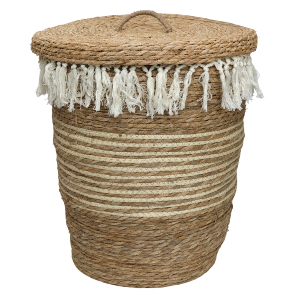 Stil dhe elegancë janë dy elementët që karakterizojë këtë shportë magazinimi e cila vjen në përmasat 28x20x11 cm duke u përshtatur lehtësisht me hapësirat tuaja. Ju mund ti merrni ato si set duke organizuar sendet tuaja në mënyrë të përsosur, por edhe të zgjidhni ta përdorni ashtu si ju dëshironi. E punuar me kashtë dhe më një ndërthurje mes ngjyrave të bardhë dhe kafe natyrale, është zgjedhja ideale për adhuruesit e një stili minimalist me linja të pastra. Shporta ka një stil boho dhe kombinohet lehtësisht me ambiente të ndryshme. Ju mund ta përdorni atë në tualet për të organizuar sende të ndryshme të përdorimit vetjak, po ashtu edhe në dhomën tuaj të gjumit, pra mund të kenë opsione dhe alternativa të ndryshme përdorimi sipas nevojave tuaja.