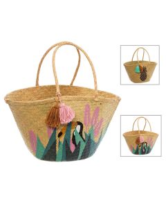 Shportë me thurje, kashtë, natyrale, 41x34xH17 cm