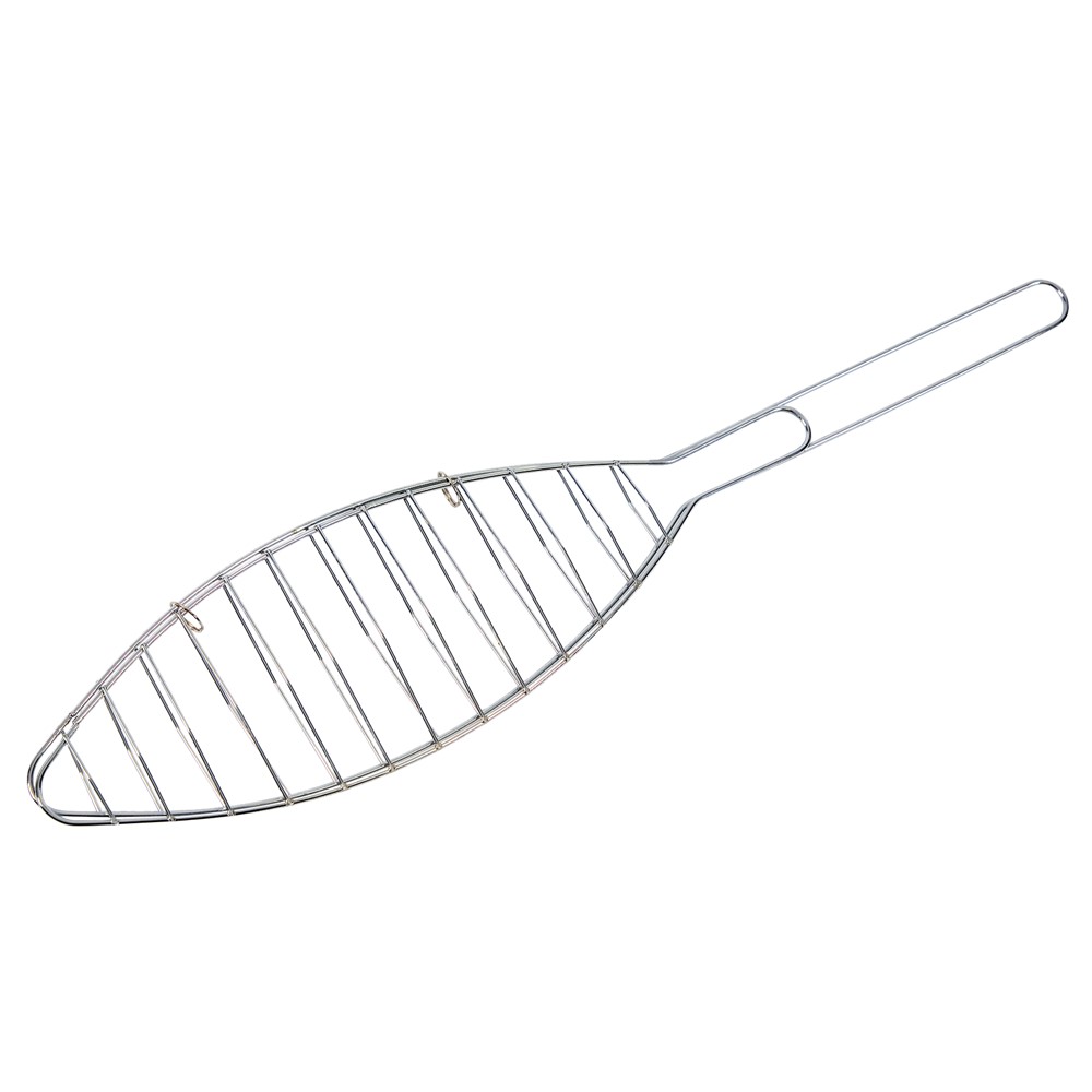 Skarë për barbekjue, prej materiali metal I kromuar, në formen e peshkut, në përmasë 42x9 cm. Përdoret për të pjekur peshkun mbi zgarë forma e saj e bën skarën të jetë praktike për të pjekur në të dy anët e saj pa e dëmtuar formën fillestare të peshkut. Përdoret në cdo formë barbekjuje me qymyr.