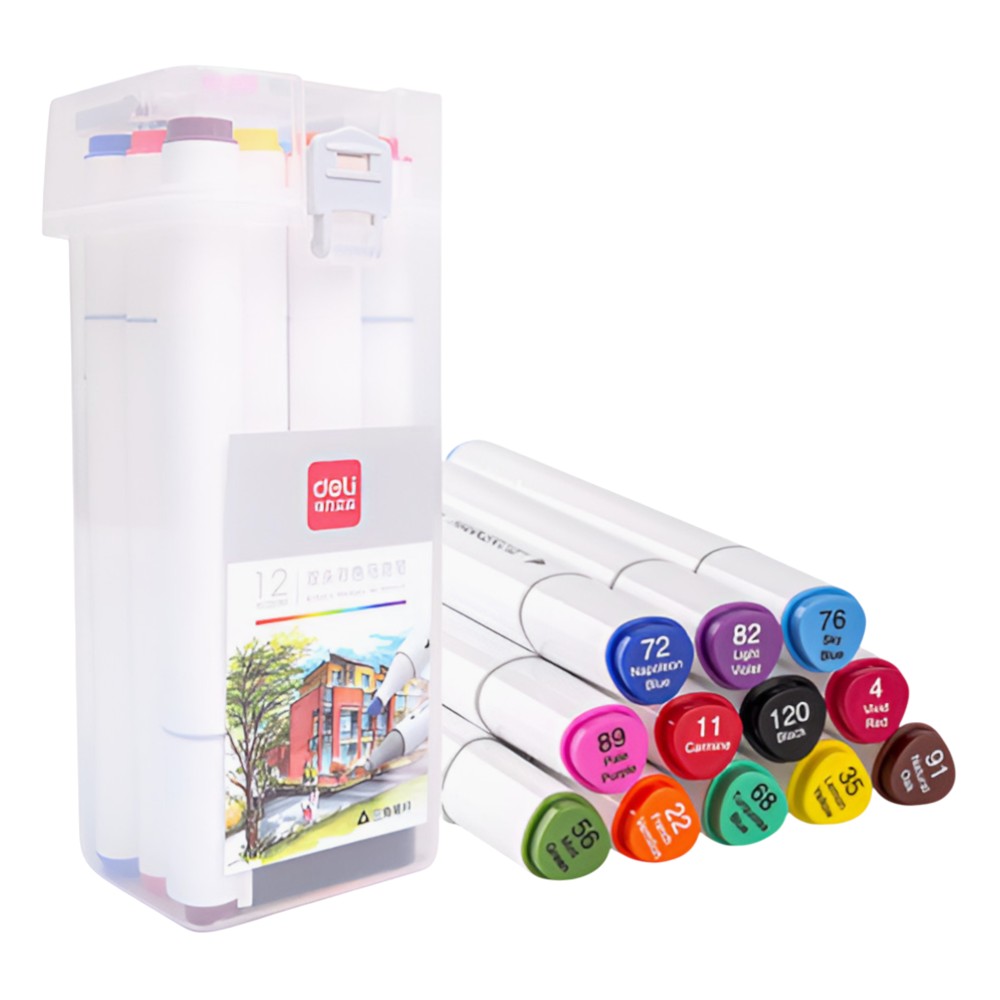 Ky set me 12 Sketch Marker nga Deli ka dy maja: një majë e hollë për detaje të sakta dhe një majë e trashë për ngjyrosje të shpejtë dhe mbulim uniform. Ngjyrat e gjalla dhe të qëndrueshme e bëjnë këtë set ideal për vizatime, ilustrime dhe projekte kreative. I përshtatshëm për nxënës, artistë të vegjël dhe të apasionuar pas artit, me materiale të sigurta dhe rezistente për përdorim afatgjatë.