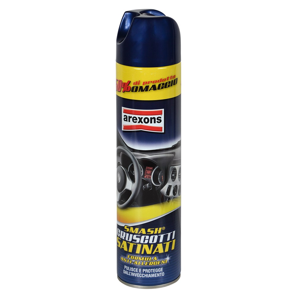 Solucioni i kroskotit AREXONS SMASH HIGH GLOSS pastron, llustron dhe mbron plastikën, lëkurën, lëkurën atrificiale, gomën dhe sipërfaqet prej druri në makinë. Formula e tij pastron, trajton sipërfaqet duke hequr pluhurin në tekstil dhe eleminuar erën e tymit.
