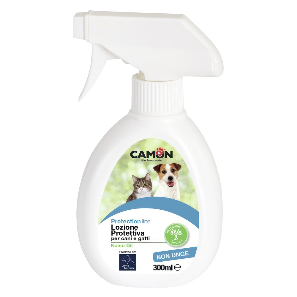Locion mbrojtës Olio di Neem krijon një shtresë mbrojtëse që qetëson dhe pastron lëkurën e kafshës suaj kur irritohet, falë formulës së saj të veçantë me vaj neem dhe glicerinë. I përshtatshëm për qen dhe mace. Për një rezultat më të mirë, lani kafshën tuaj me shampon me përbërje nga vaji Neem përpara se të aplikoni këtë solucion.