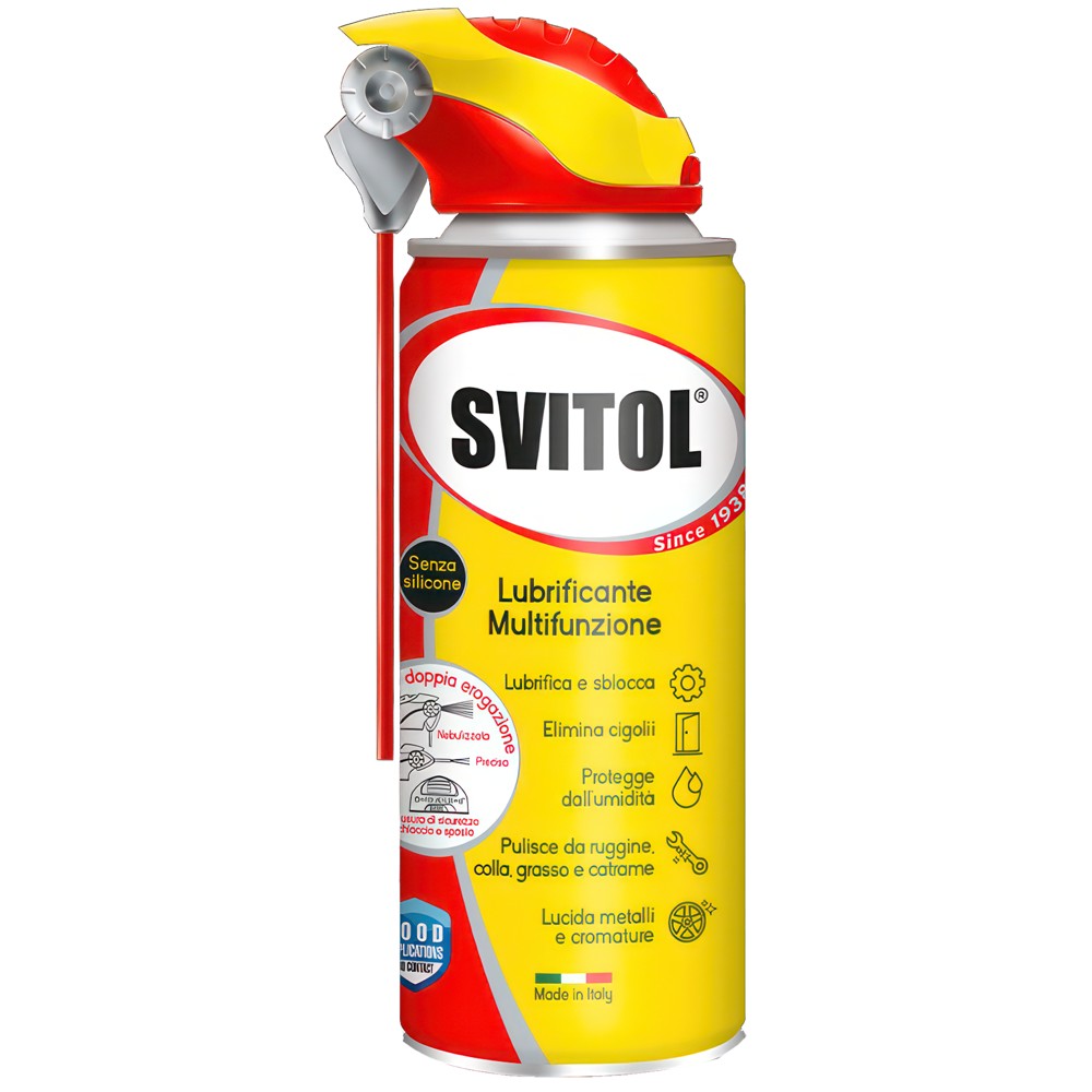SVITOL Super Spray: lubrifikant që depërton thellë , atje ku mekanizmat janë të bllokuara. Ajo ka veti të shkëlqyera antioksiduese. Eshte I përshtatshëm për t'u përdorur në të gjitha pozicionet në sajë të valvulave të saj 360 ° ne perdorim.