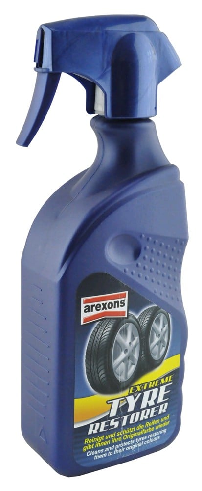 Solucioni i gomave AREXONS Extreme Tyre Restorer është projektuar posaçërisht për të llustruar, pastruar, rigjallëruar, mbrojtur dhe rikthimin e ngjyrës orginale të gomave të makinës. Përbërja e saj me formulen kundër plakjes i bën gomat fleksibël, të reja dhe i mbron ato nga forcimi dhe plasaritjet e diellit.