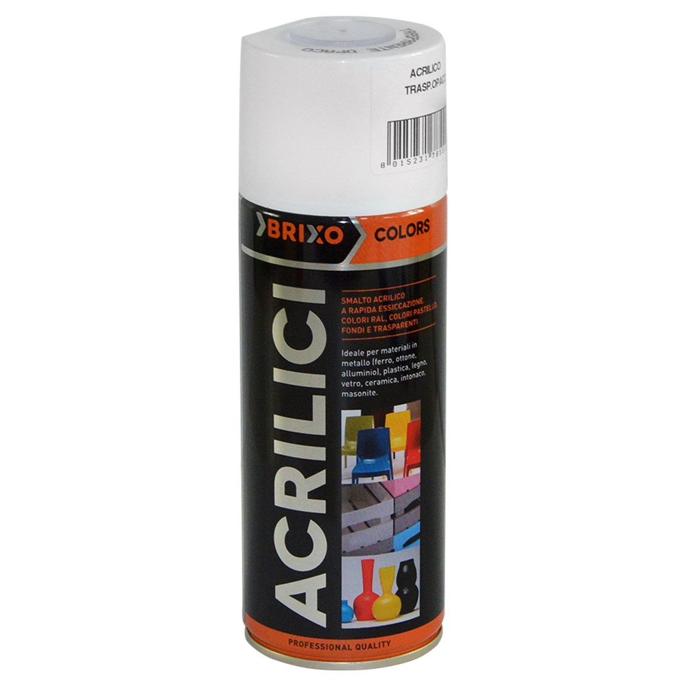 Sprai akrilik, 400 ml, ngjyrë trasnparente, mat. Bojë zmalti akrilike. Përdoret për të lyer në metal, plastik, dru, qelq, qeramikë etj. Sipërfaqja para aplikimit duhet të jetë e pastër nga graso, pluhuri dhe ndryshku. Largësia nga sipërfaqja në momentin e sprucimit duhet të jetë 20-30 cm. Mbulon afërsisht 2 metër katror. Tundeni mirë para dhe gjatë përdorimit.