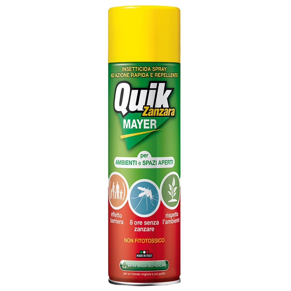 QUIKMAYER është një produkt i veçantë që ka një efekt të menjëhershëm për të eleminuar të gjitha llojet e mushkonjave, gjithashtu ai parandalon per rreth 8 orë mushkonjat që perpiqen të futen në zonen e trajtuar më parë me insekticid, spraiti gjithashtu është shumë efikas dhe ndaj mizave të ndyshme. E përshtatshme për ambjete shtepiake, industriale, kampe dhe kudo. Udhëzime për përdorim: Tundeni mirë para përdorimit. Shperndajeni spraitin në menyre uniforme në sipërfaqen qe do të trajtoni duke mbajtur shtypur spraitin per 3-4 sekonda në një metër linar, duhet pasur kujdes gjatë aplikimit në mënyrë qe spraitin ta shpërndani ne te gjithe siperfaqen qe do te trajtoni. PARALAJMËRIME: Nëse përdoret në dhomat ku banoni lëreni të veprojë për disa minuta dhe pastaj prisni derisa dhoma të ajroset. Mos e përdorni produktin në sasi të tepërt. Shmangni kontaktin në mënyre të drejtpërdrejtë me sytë. Shmangni kontaketet me ushqimet. Mos konsumoni ushqime, mos pini duhan gjatë përdorimit. Në rast ndotje, lani duart me ujë dhe sapun. Ne rast aksidenti ose në qoftë se ju nuk ndiheni mirë kërkoni këshilla mjekësore menjëherë.