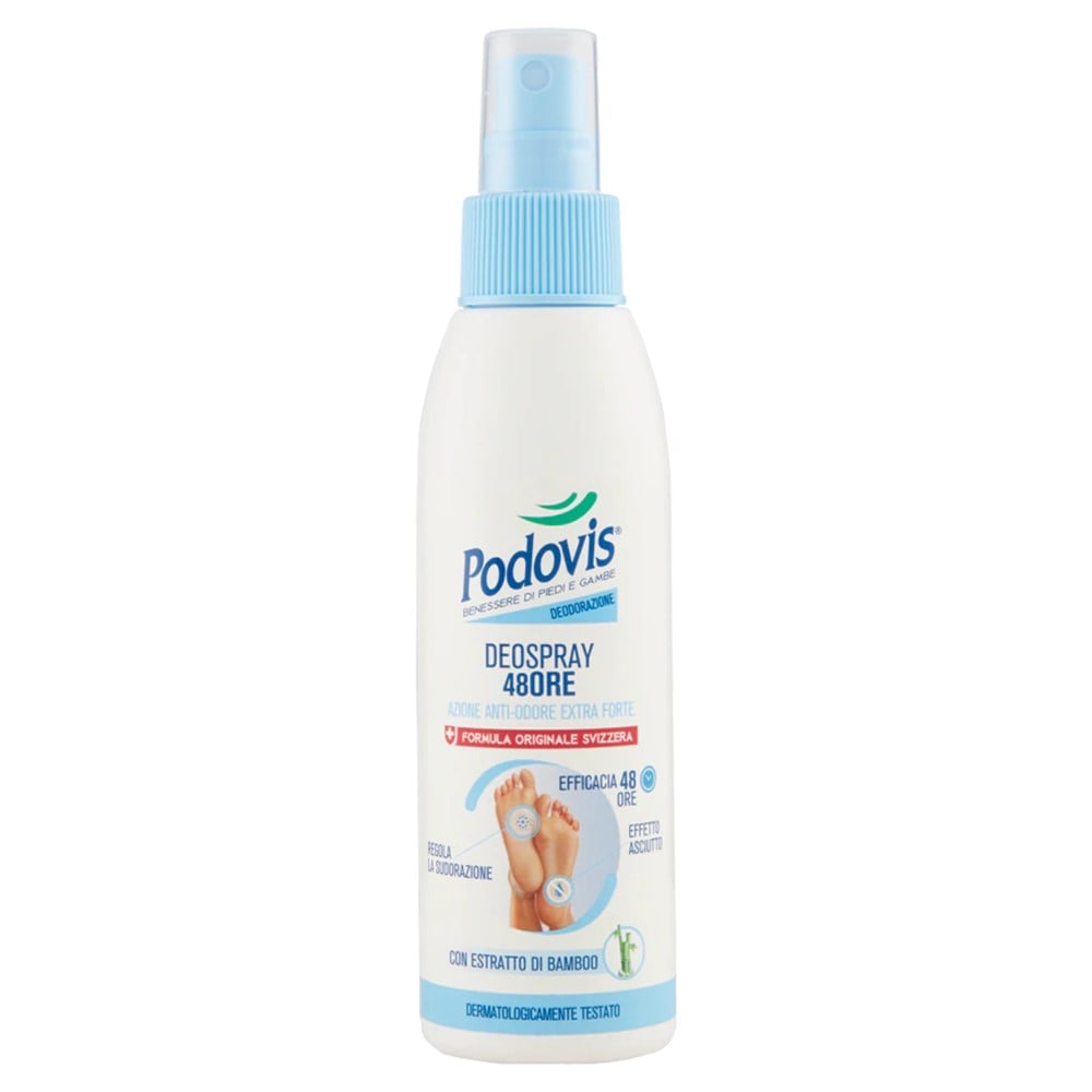 Sprai kundër aromës së këmbëve Podovis është një produkt që kryen një veprim efektiv me kohëzgjatje 48 orë, falë përbërësve aktiv me veprim kundër djersitjes dhe kundër aromës. Formula e tij jo e yndyrshme lë një efekt ''të thatë'' në lëkurë duke ruajtur nivelin natyral të hidratimit. I testuar dermatologjikisht.