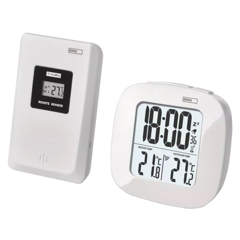 Termometri dixhital me valë EMOS. Ai mat temperaturën e brendshme nga 0 ° C në + 50 ° C dhe temperaturën e jashtme nga -20 ° C në + 60 ° C. Ju lejon të zgjidhni njësinë e matjes nga Celsius në Fahrenheit. Është një tregues praktik i trendit të temperaturës, që shfaq vlerën minimale dhe maksimale dhe ka një dizajn modern dhe elegant. Pajisja ka një ekran të qartë dhe të madh (46 × 49 mm). Ky termometer praktik është i pajisur me një sensor wireless me një rreze deri në 30 metra. Termometri punon me dy bateri AAA 1.5V, edhe sensori punon me dy bateri AAA 1.5V. Termometri EMOS jo vetëm që do të monitorojë temperaturën, por edhe kohën me një orë të kontrolluar nga sinjali i radios DCF.