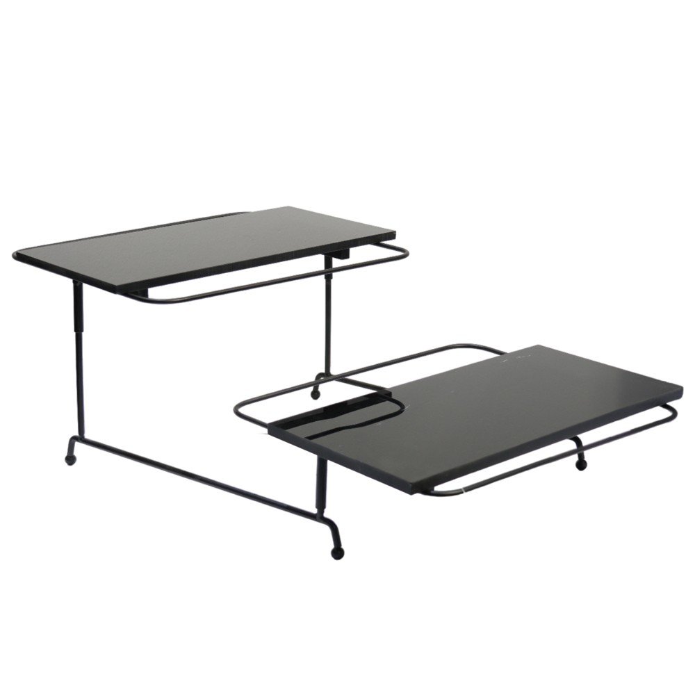 Produkti është një stendë ushqimes 2 katëshe e prodhuar nga materialet sintetike melaminë. Stendëja ka ngjyrë të zezë dhe dimensionet 53x32xH17.5 centimetra.