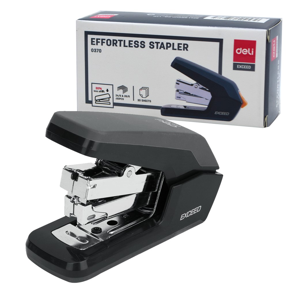 Stepler për letër, prej materiali metalik me veshje plastike rezistente, me përmasa të thumbave 24/6 dhe 26/6. Stepleri ka dizajn ergonomik, i cili lejon të përshtatet me formën e dorës dhe të jetë i lehtë në përdorim. Përdoret për kapjen e dokumenteve të ndryshme në shkolla, zyra, kancelari, etj.,