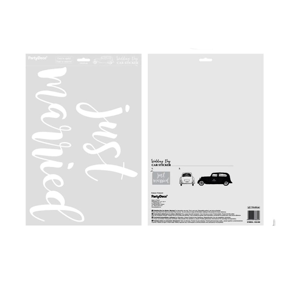 Stiker, Just married", për dekorim makinash, 33x45 cm, e bardhë, 1 copë