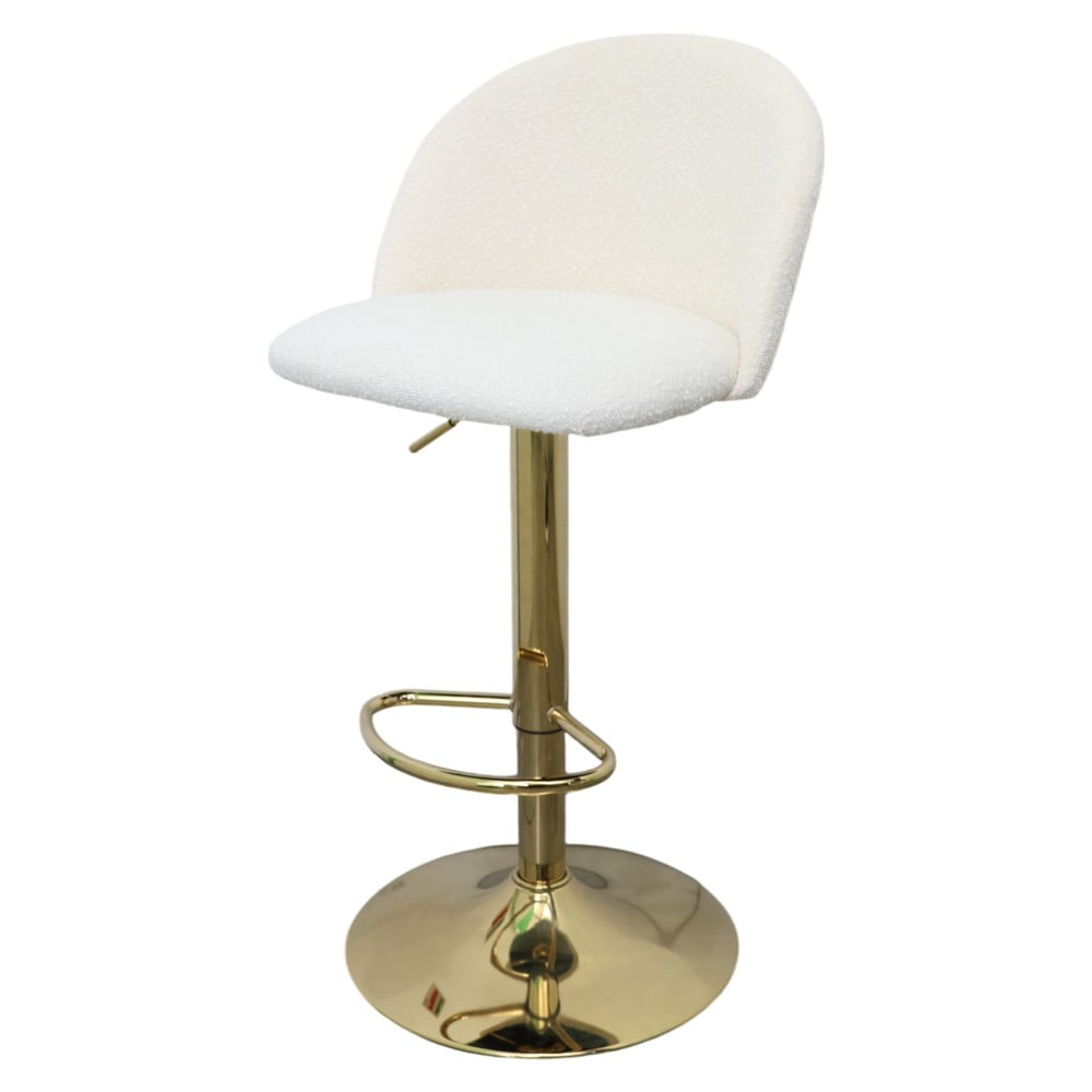 Stol bari, Arroins, tapiceri tekstili, strukturë metalike, e bardhë/e artë, 47.5x46.5xH77.5-98.5 cm