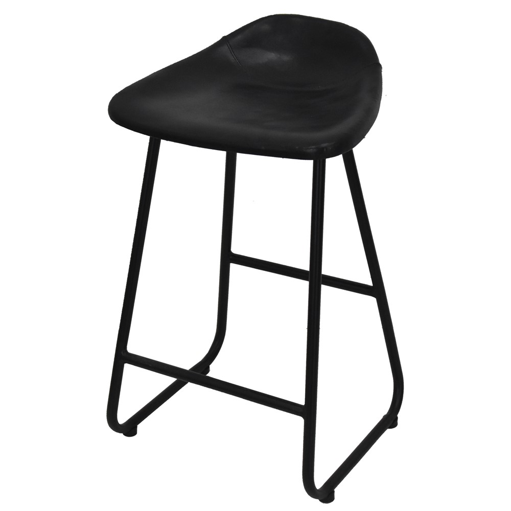 Stol bari, mbështetëse për këmbët, strukturë metali, ulëse lëkure, zezë, 38x38xH68 cm
