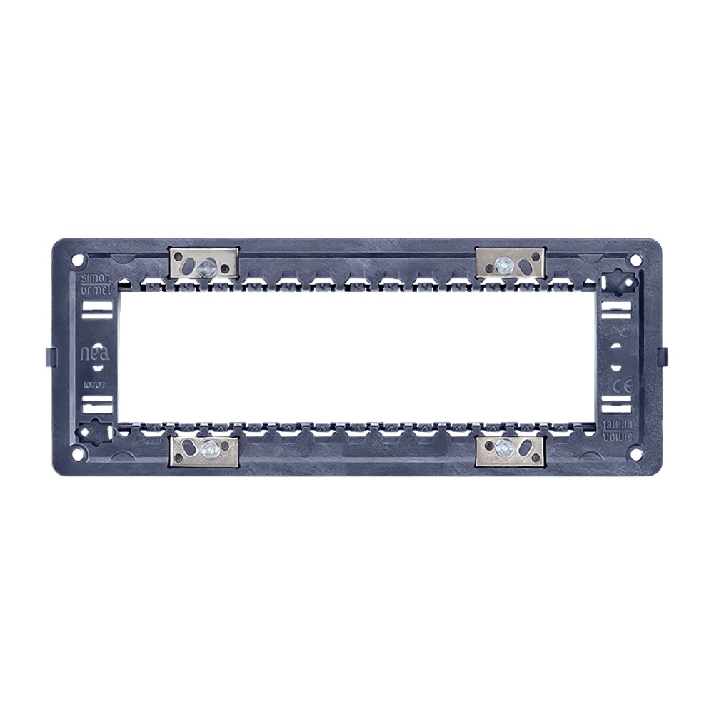 Suport plastik, 7 module, markë Simon Urmet. Ky suport ofron mundësinë për të montuar deri në shtatë module elektrike, duke siguruar një organizim të shkëlqyer për instalimet elektrike të kompleksuara. I përshtatshëm për përdorim në ambiente të ndryshme, si shtëpi, zyra apo ambiente komerciale. Dizajni modern dhe i qëndrueshëm siguron instalim të lehtë dhe të sigurt.
