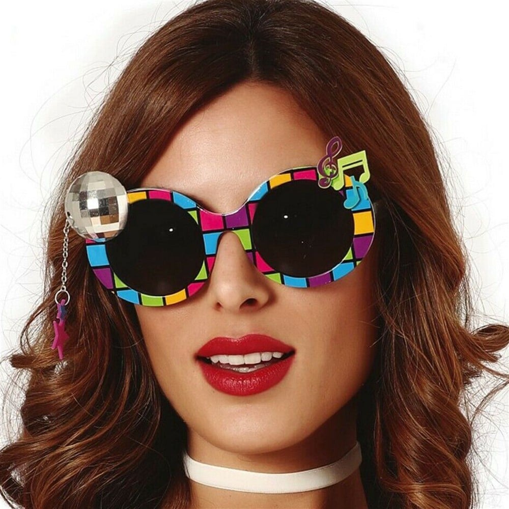 Syze Discoteke, prej materiali plastik, në ngjyrë të zezë të xhamit me skelet me ngjyra. Plotëson veshjen tuaj me këto syze dielli super të lezetshme. Ideale për karnaval ose ndonjë festë tjetër kostumesh.