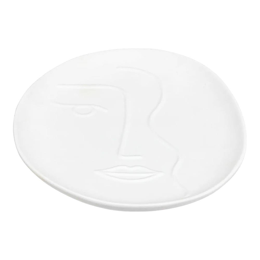 Tabaka dekorative me dizajn dhe formë fytyre moderne. Ajo është bërë nga materiali qeramik në ngjyrë të bardhë. Mund ta përdorni për të dekoruar shtëpinë tuaj dhe të shtoni një prekje luksi në dhomën tuaj të ngrënies. Kombinojini ato me pjesën tjetër të artikujve në të njëjtin koleksion për një efekt të plotë në hapësirën tuaj.