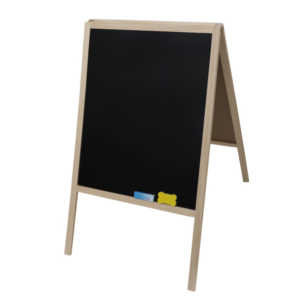 Kjo tabelë menu prej druri është ideale për prezantimin e ofertave, menusë apo njoftimeve në mënyrë praktike dhe elegante. Me dizajn me dy anë, ofron hapësirë të dyfishtë për shkrim, duke e bërë perfekte për restorante, kafene, bare apo dyqane. Sipërfaqja e zezë e lëmuar lejon shkrim të qartë me shkumësa dhe fshirje të lehtë pa gjurmë, ndërsa struktura prej druri i jep një pamje natyrale dhe tërheqëse. Me dimensione 44x70 cm, është kompakte dhe e lehtë për t’u vendosur kudo.