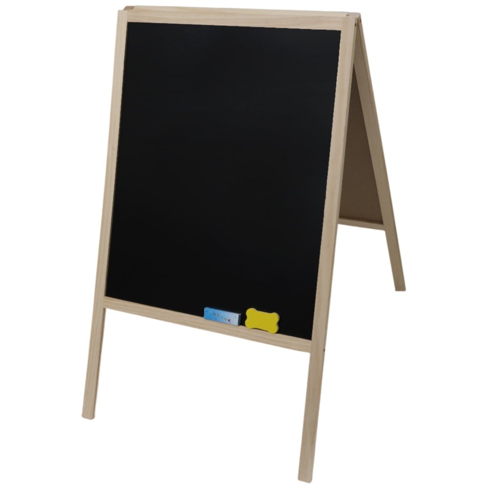 Kjo tabelë menu prej druri është ideale për prezantimin e ofertave, menusë apo njoftimeve në mënyrë praktike dhe elegante. Me dizajn me dy anë, ofron hapësirë të dyfishtë për shkrim, duke e bërë perfekte për restorante, kafene, bare apo dyqane. Sipërfaqja e zezë e lëmuar lejon shkrim të qartë me shkumësa dhe fshirje të lehtë pa gjurmë, ndërsa struktura prej druri i jep një pamje natyrale dhe tërheqëse. Me dimensione 50x90 cm, është kompakte dhe e lehtë për t’u vendosur kudo.