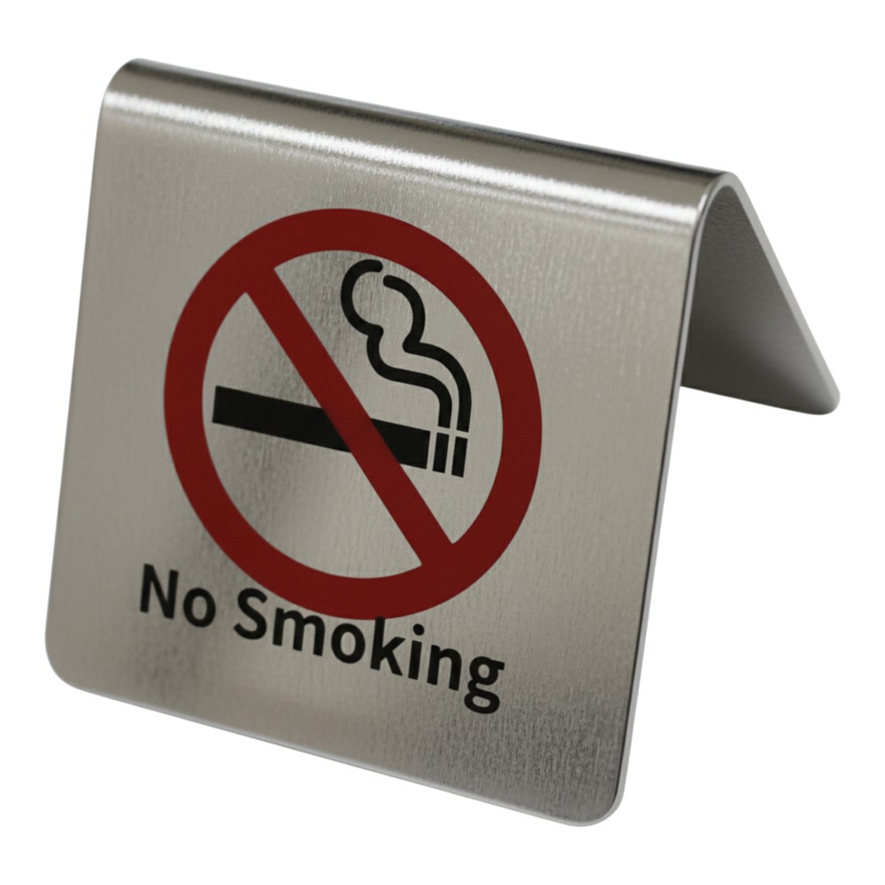 Kjo tabelë “No Smoking” prej inoksi, me ngjyrë argjendi dhe përmasa 5x5 cm, është ideale për përdorim në ambiente profesionale si restorante, hotele dhe zyra. Materiali i qëndrueshëm prej inoksi dhe dizajni i saj i thjeshtë dhe minimal ofrojnë elegancë, përdorim afatgjatë dhe sinjalizim të qartë të ndalimit të duhanit.