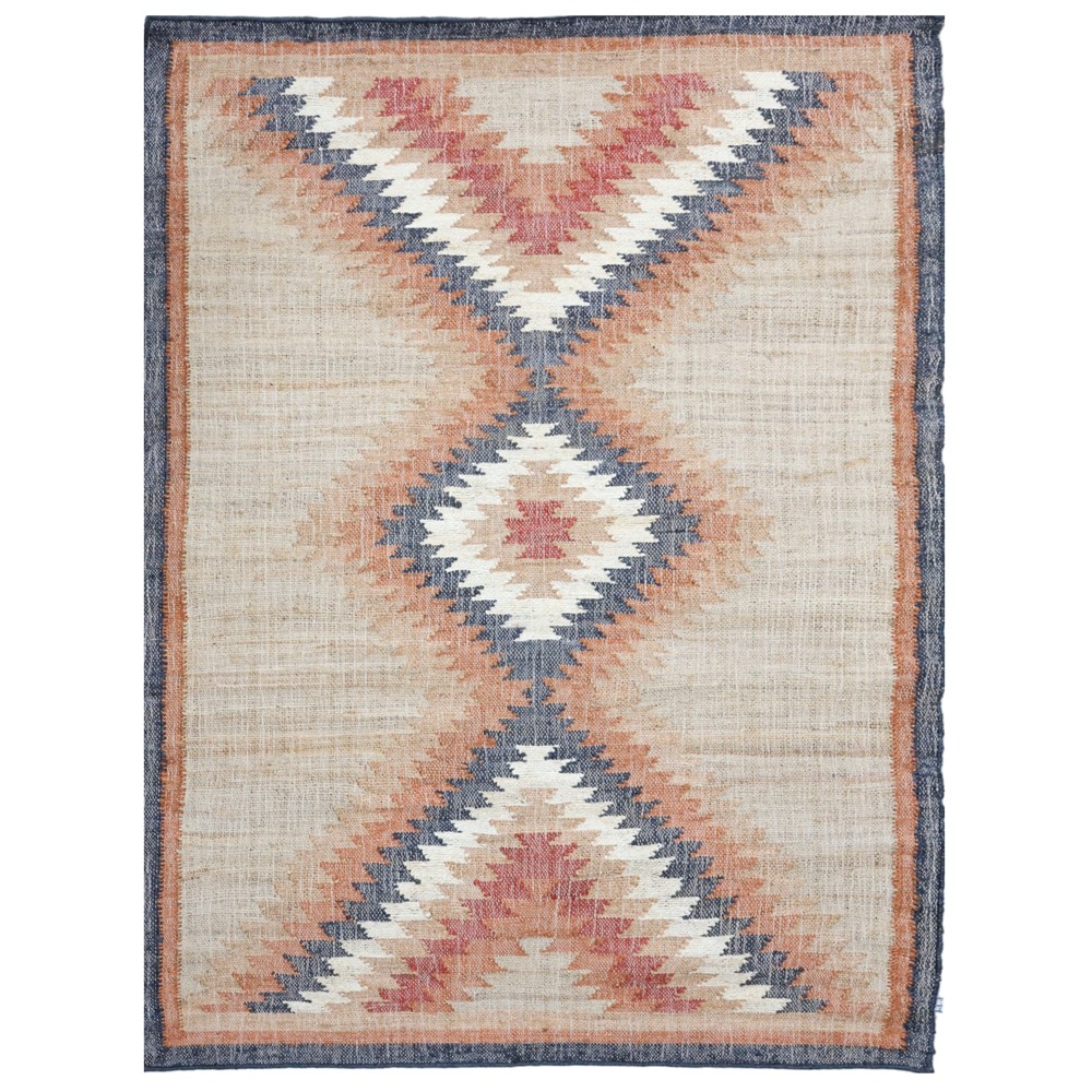 Tapeti "Kilim Nirvana" me stil klasik, i përbërë nga 80% jute dhe 20% pambuk, në ngjyrë bezhë me ngjyra të ndryshme, është një zgjedhje e shkëlqyeshme për të sjellë një prekje të veçantë dhe tërheqëse në ambientin tuaj.