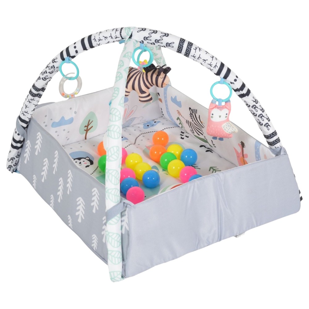 Happy Space është një palestër shumëfunksionale aktiviteti, e krijuar për të ofruar argëtim dhe zhvillim për fëmijën. Ajo ofron 3 pozicione loje, në shpinë, në bark dhe ulur, duke i'u përshtatur nevojave të ndryshme të foshnjës gjatë rritjes. Seti përfshin disa lodra të buta, 20 topa lojërash, një jastëk komod, si dhe harqe loje të heqshme, që mund të vendosen ose hiqen në varësi të aktivitetit. Të gjitha materialet janë jo toksike, të sigurta për shëndetin e fëmijëve. Play gym-i ka funksionin e mbylljes së 4 anëve, duke krijuar një mjedis të mbrojtur dhe të rehatshëm për lojë. Stimulon zhvillimin e inteligjencës së fëmijës, lëvizshmërinë e duarve dhe këmbëve, si dhe ndihmon në njohjen e formave dhe ngjyrave të ndryshme.