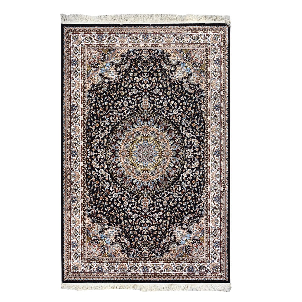 Tapet Persian me përbërje e gjitha prej poliestër. Ngjyra kafe e errët me dizajn klasik ka në fokus emblemën rrethore dhe korniza e cila kompleton shumë bukur dizajnin. Tapeti është i punuar deri në detaje. Thekët prej pambuku dhe dendësia shumë e madhje prej 1 miljon e 200 mijë nyje për metër katror i japin këtij tapeti cilësi dhe jetëgjatësi. Falë dendësisë tapeti është i sigurt nga papastërtitë pasi në qoftë se pastrohet menjëherë ato nuk arrijnë të depërtojnë në bazën e tapetit. Gjatësia e fijes 6mm. I rekomanduar të lahet në mënyrë profesionale.