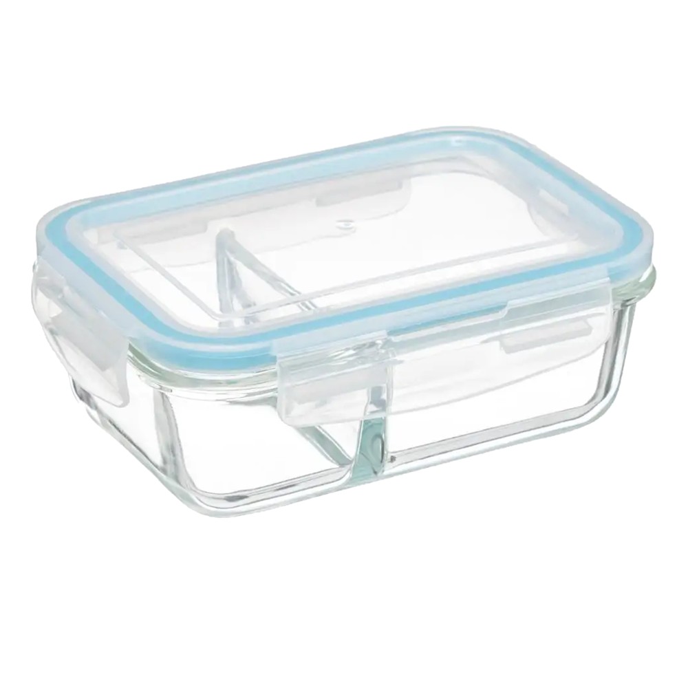 Po vlerësoni:Tas hermetik me ndarje, qelq/PP, transparent/blu, 20x13.5xH6.7