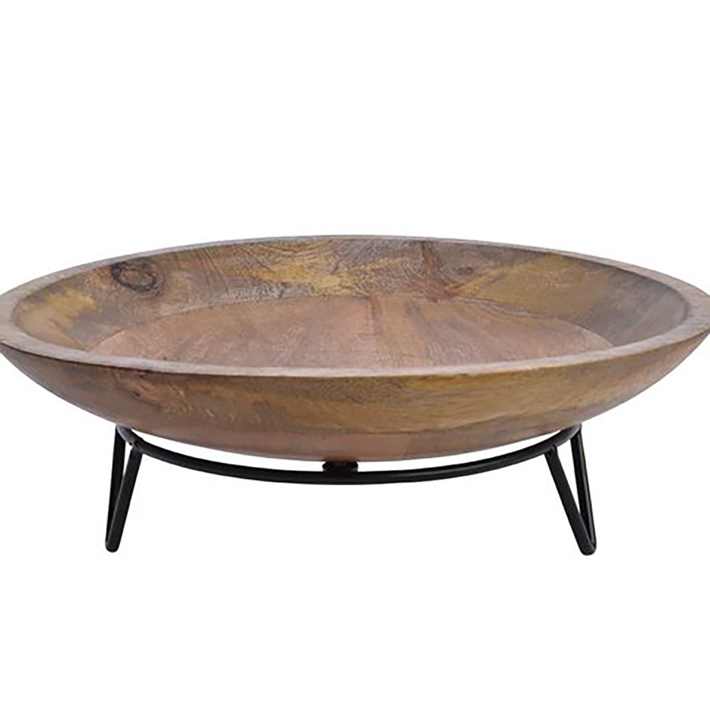 Po vlerësoni:Tas me stendë, dru mango/metal, kafe, Dia.40xH10 cm