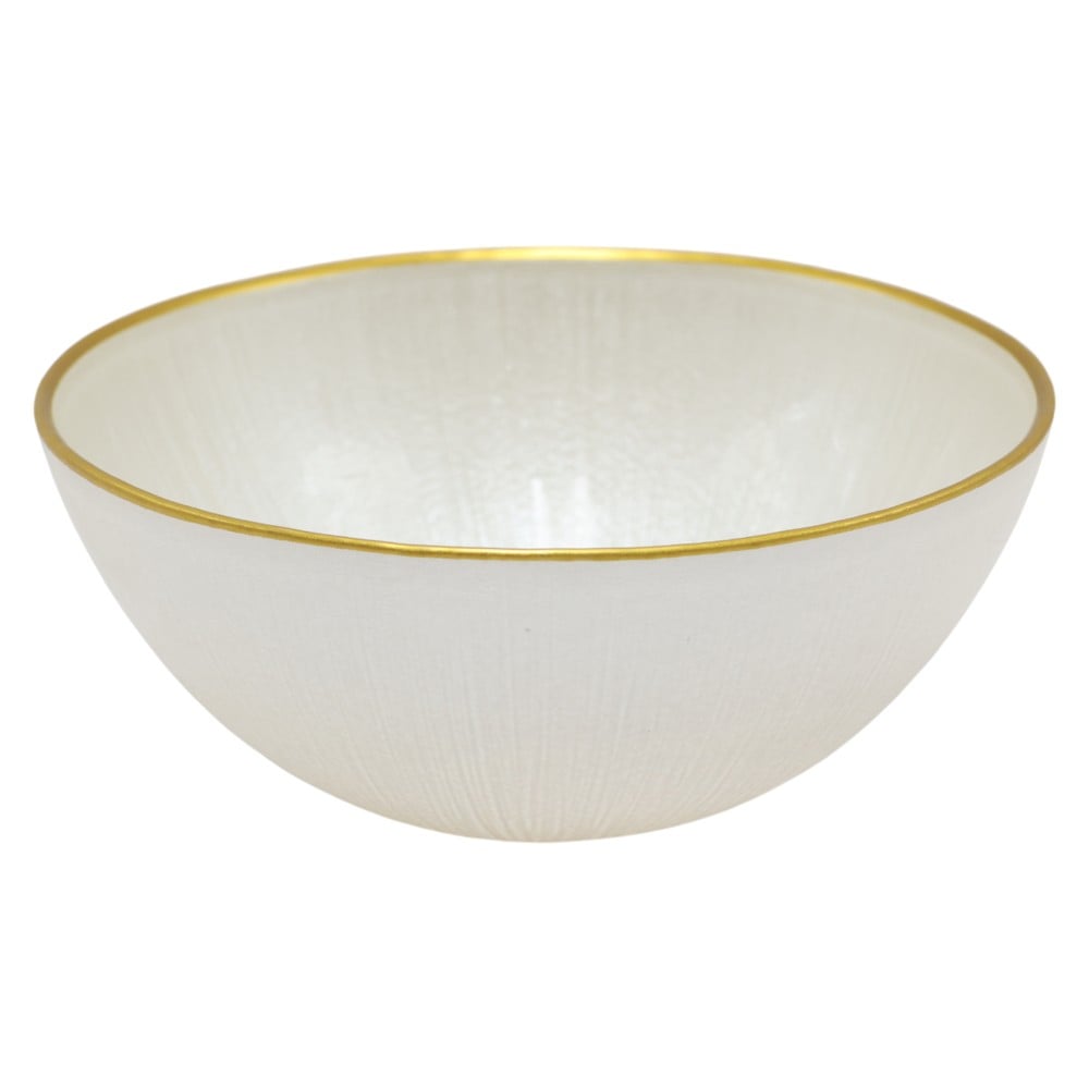 Po vlerësoni:Tas, qelqi, i bardhë me konturnë floriri, Dia. 15 cm