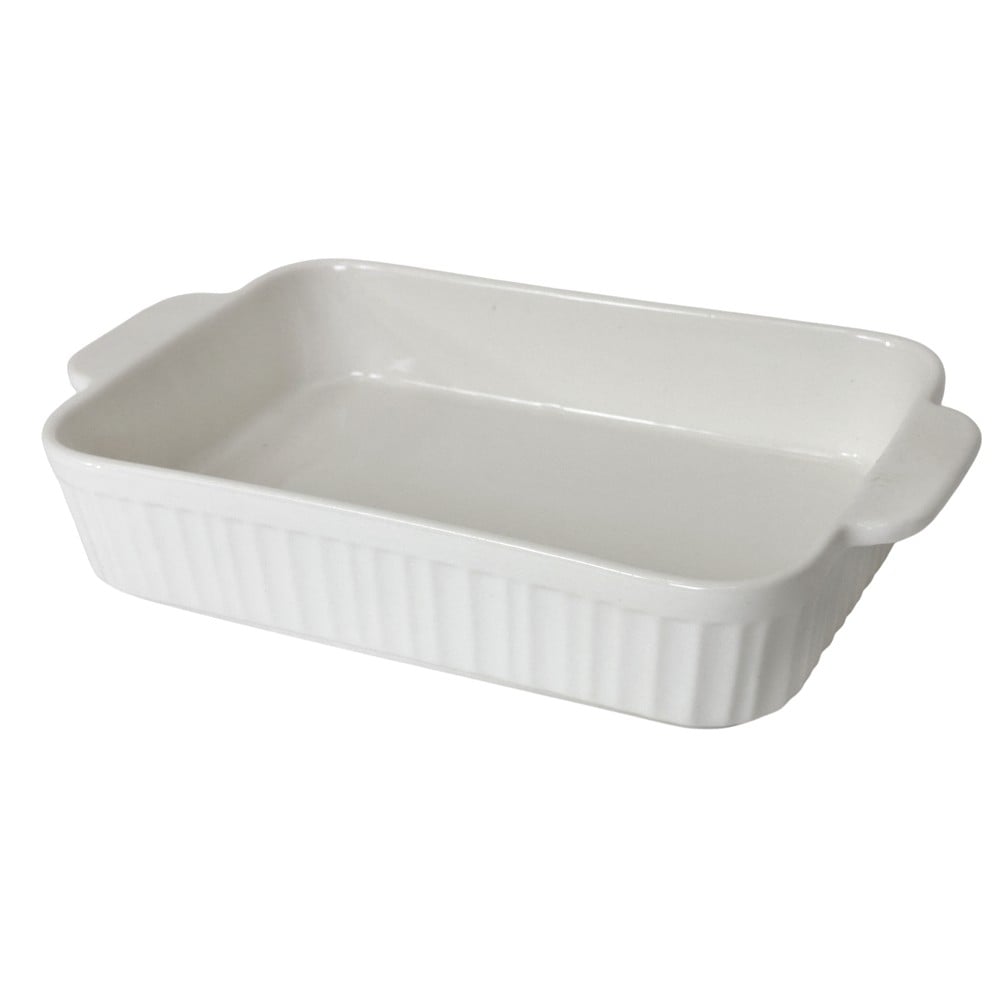 Kjo tavë elegante prej qeramike të bardhë është perfekte për pjekjen e çdo lloj ushqimi, nga lasagna deri te pjatat e përditshme të furrës. Me përmasa 26x16.5x4.8 cm, ajo ofron hapësirë të mjaftueshme për përgatitje të bollshme dhe shpërndarje të barabartë të nxehtësisë. Materiali i qëndrueshëm, dizajni klasik dhe minimalistik, si dhe lehtësia në përdorim dhe pastrim e bëjnë këtë tavë një shtesë të domosdoshme për çdo kuzhinë.