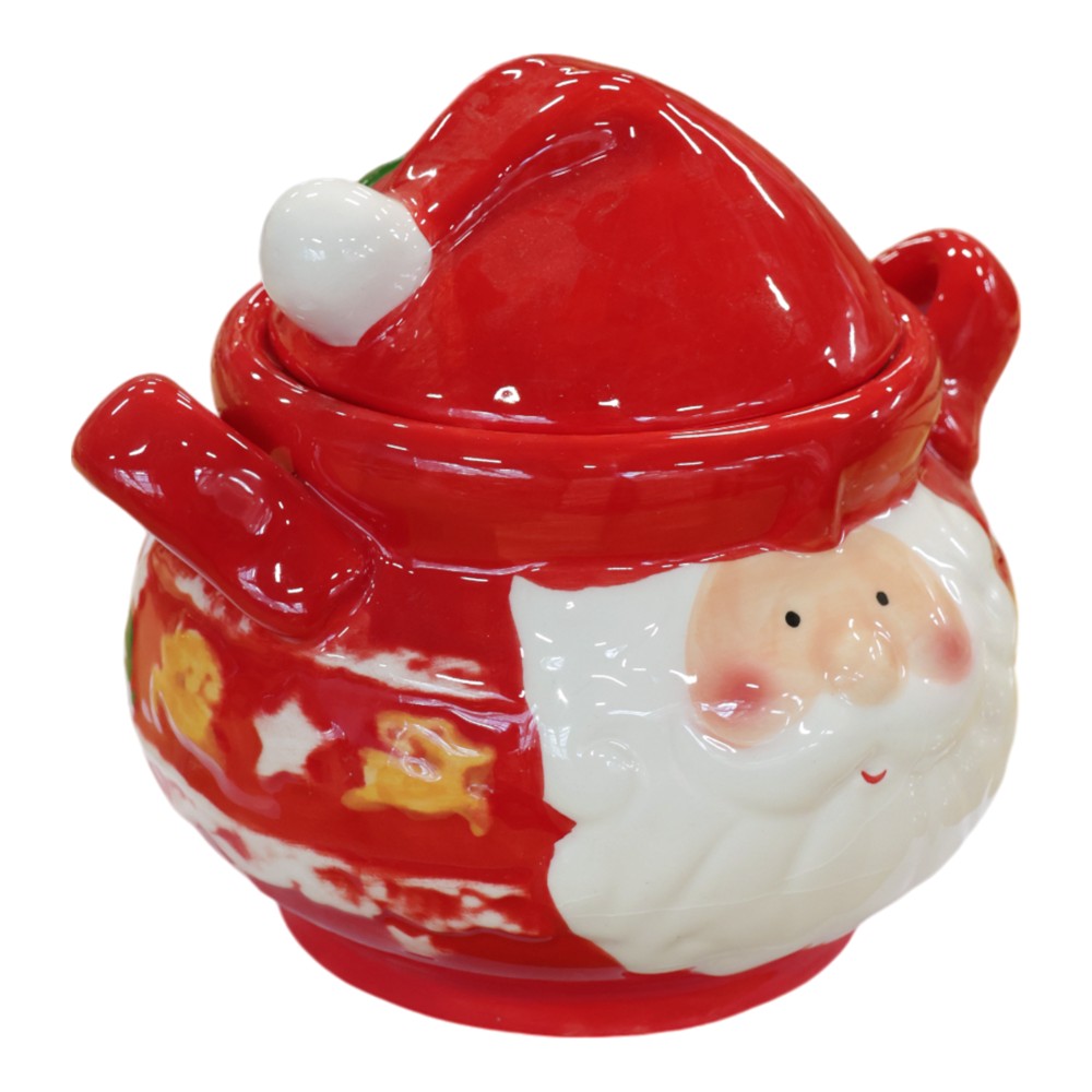 Tavë me kapak dekoruese Christmas, qeramikë, e bardhë/e kuqe, Dia.15.3xH9 cm