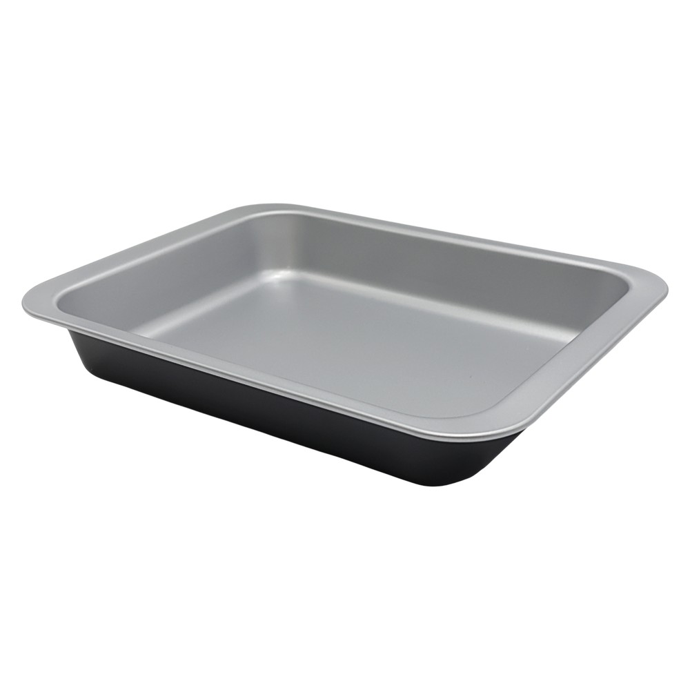 Tava për pjekje Signature është një zgjedhje ideale për gatime të ndryshme, me kapacitet 2.4 litra dhe përmasa 32.5x24.7x5 cm. E bërë nga material metalik, kjo tavë ofron shpërndarje të barabartë të nxehtësisë dhe qëndrueshmëri të lartë, duke siguruar rezultate perfekte gjatë pjekjes. Kombinimi i ngjyrave gri dhe të zezë i jep një pamje elegante dhe moderne, duke u përshtatur me çdo kuzhinë. Përshtatet shumë mirë për pjekjen e mishrave, perimeve, dhe gatimeve të tjera që kërkojnë një hapësirë të mesme dhe një temperaturë të qëndrueshme. Pjesa metalike është gjithashtu shumë e qëndrueshme dhe e lehtë për t'u pastruar.