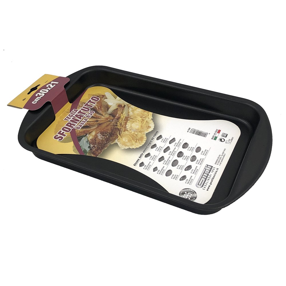 Tava për gatime të ndryshme si për shembull mishin, peshkun, produkte brumi, e të tjera. Material alumini me veshje kundra ngjitëse, cilësi shumë e mirë e produkteve Italiane, vjen me një çmim konkurues.