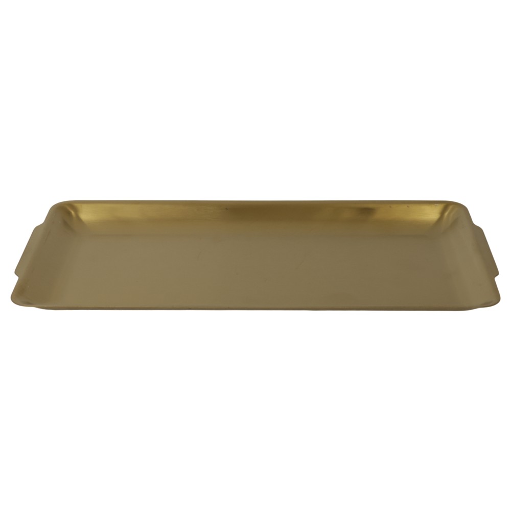 Tava servirëse metalike me ngjyrë floriri është një aksesor elegant dhe funksional për çdo tryezë. Me përmasa 16x32 cm, ajo është ideale për servirjen e ëmbëlsirave, pijeve, frutave apo ushqimeve të ndryshme me stil dhe rafinim. Materiali metalik siguron qëndrueshmëri dhe jetëgjatësi, ndërsa përfundimi me ngjyrë floriri i jep një pamje luksoze dhe tërheqëse. E lehtë për t’u pastruar dhe e përshtatshme për çdo rast — nga përditshmëria deri te eventet festive — kjo tavë servirjeje është kombinimi perfekt i funksionalitetit dhe elegancës.