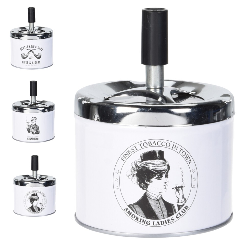 Po vlerësoni:Tavëll duhani me kunjë shtypës, metalike, e bardhë, 9x12 cm