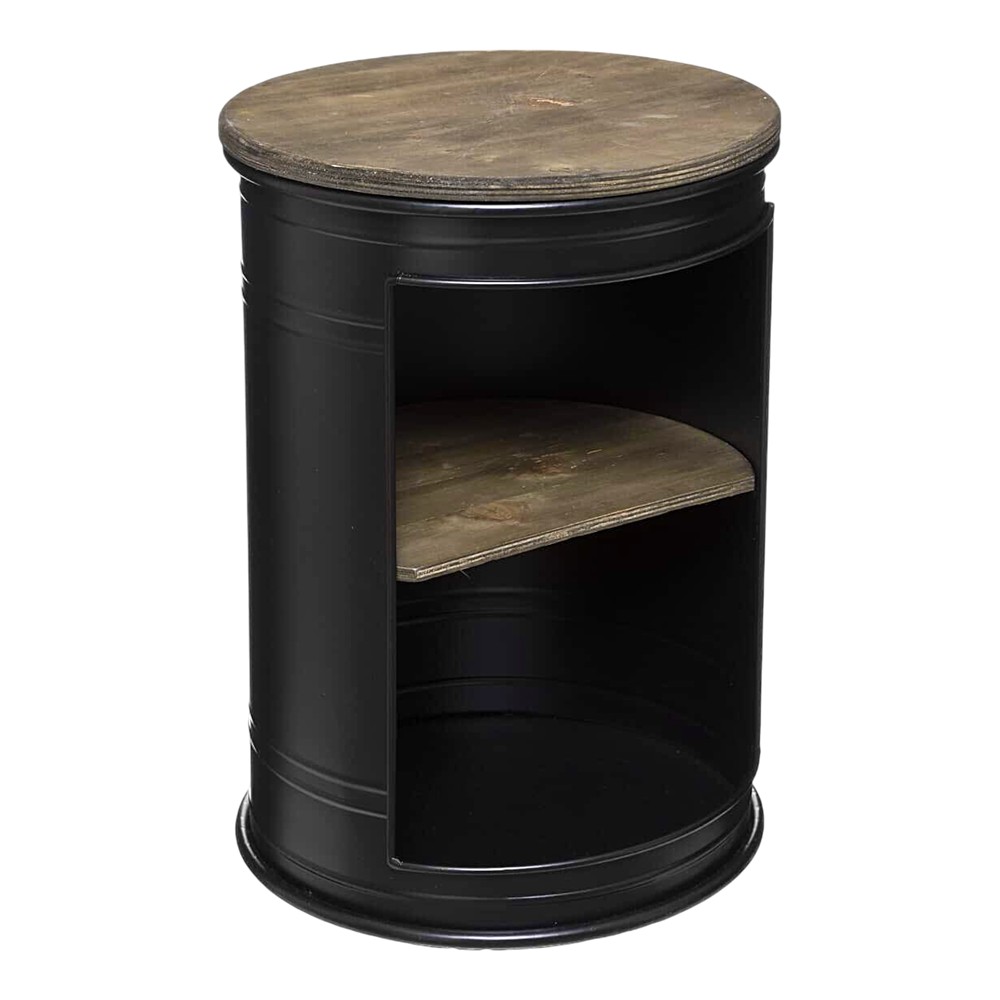 Tavolina anësore e vogël në ngjyrë të zezë Diego. Një stil industrial i vendosur që do t'ju joshë. Origjinale me formën e saj dhe kombinimin e saj prej çeliku dhe druri. Kjo tavolinë ka një raft të brendshëm dhe dimensione 33.5xH47.5 cm.