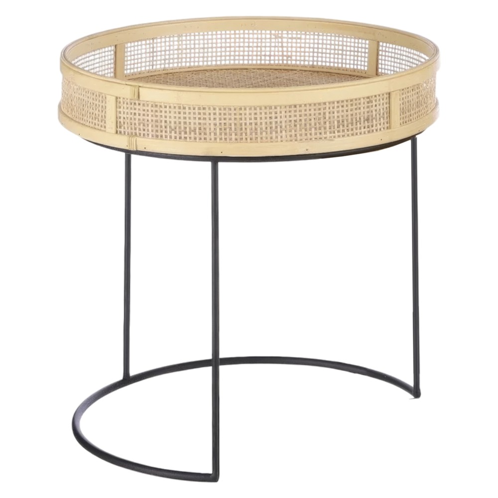 Tavolinë anësore, Leandro, M, metalike/bambu, e zezë/kafe, Ø45xH45 cm