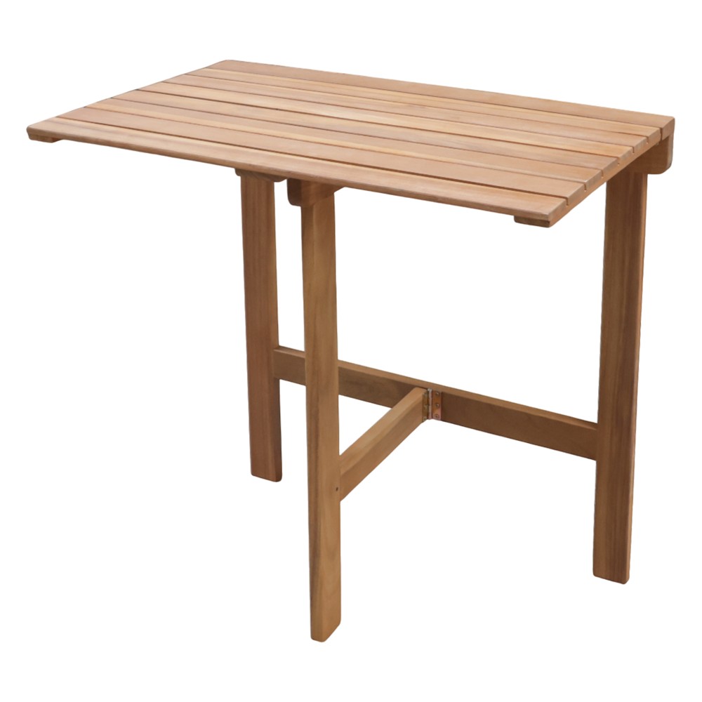 Prodhuar nga dru tropikal Acacia dhe projektuar per funskionalitet maksimal gjate perdorimit. Druri tropikal Acacia siguron qendrueshmeri te larte ndaj lageshtise dhe kalbjes. Densiteti relativisht I larte I drurit e ben ate te qenrueshem ndaj sforcimeve dhe perdorimeve te njepasnjeshme. Ngjyra natyrale e drurit sigurohet fale vajrave natyrale Acacia qe gjenden ne brendesi te drurit. Projektuar per te qene multifunskionale. Menteshat qe bejne lidhjen midis kembeve dhe trupit jane te trajtuara ne menyre qe ti rezistojne lageshtise nder vite. Dizajni inteligjent dhe forma ergonomike e bejne kete tavoline te pershtatshme per ballkonet dhe hapesirat e ngushta.. Mundesia e palosjes siguron hapesire te mjaftueshme ne ambiente te vogela