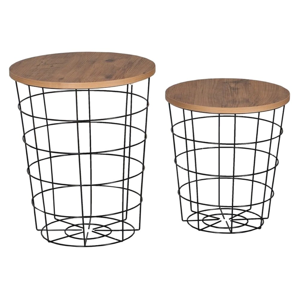 Tavolinë anësore, me strukturë metalike të përbërë nga shufra me diametër 4 mm dhe me syprinë melamine në formë rrethore. Përdoret për të vendosur objekte të ndryshme dekorative, duke shtuar një hapësirë funksionale në ambientet tuaja të brendshme. Struktura e tavolinës është e lehtë dhe rezistente, duke e bërë praktike për t'u zhvendosur në hapësirat e dëshiruara. Dizajni minimalist e bën këtë tavolinë të përshtatshme për ambientet e dekoruara me stil kontemporan apo edhe tradicional. Seti përmban 2 tavolina anësore në përmasa Ø40xH43 cm dhe Ø45xH54 cm.