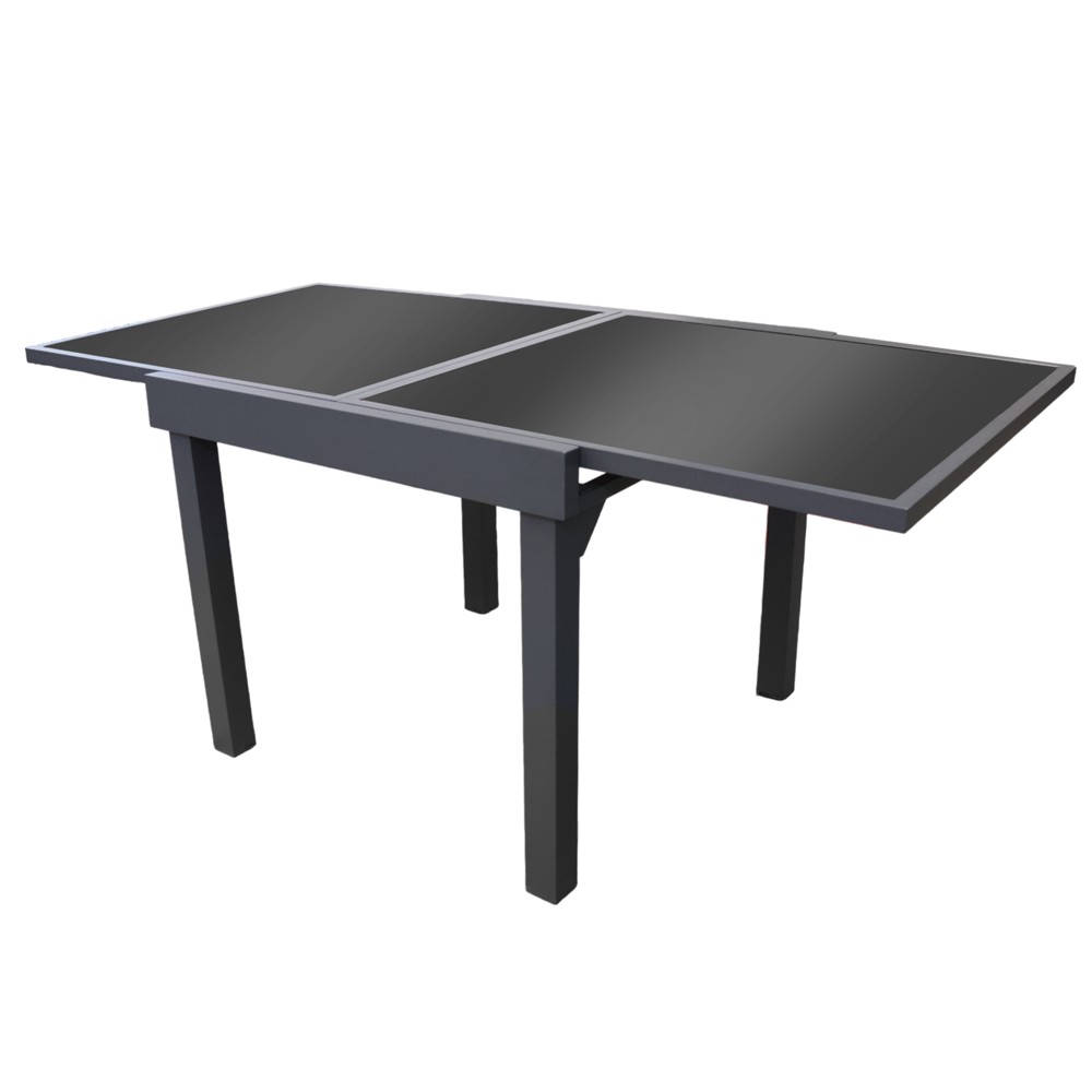 Extendable table with tempered glass, aluminum, anthracite gray, 135-270x90xH75 cm