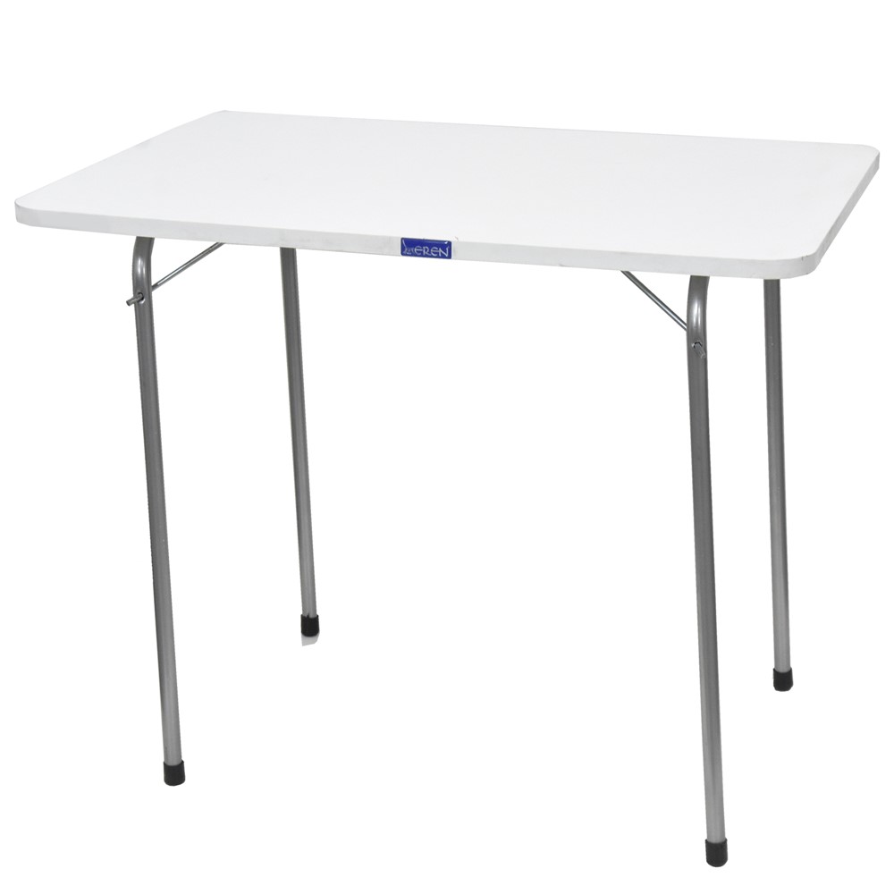 Tavolinë portative kampingu, me një strukturë mbajtëse të qëndrueshme, prej materiali metalik, me përmasa 60x80 cm. Sipërfaqja e tavolinës është e përbërë nga material druri të presuar, në ngjyrë të bardhë. Përdoret në kamping, piknik apo në plazh dhe mund të transportohet lehtësisht falë përmasave kompakte.