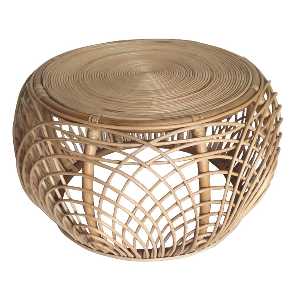 Tavolinë e vogël ratani natyral. Materiali është ekologjik dhe ka përmbajtje të lartë të parenkimës bimore, gjë që e bën më elastik, më të lehtë, më fleksibël dhe më të qëndrueshëm ndaj kushteve atmosferike. Ky produkt është i përshtatshëm për dekorimin e ambienteve të jashtme në kopshte, oborre, veranda, ballkone dhe tarraca, si edhe për ambientet e jashtme të hoteleve, bar-eve, restoranteve apo pishinave. Tavolina mundet të përdoret si tavolinë mesi shërbimi apo dhe si tavolinë dekorative anësore.