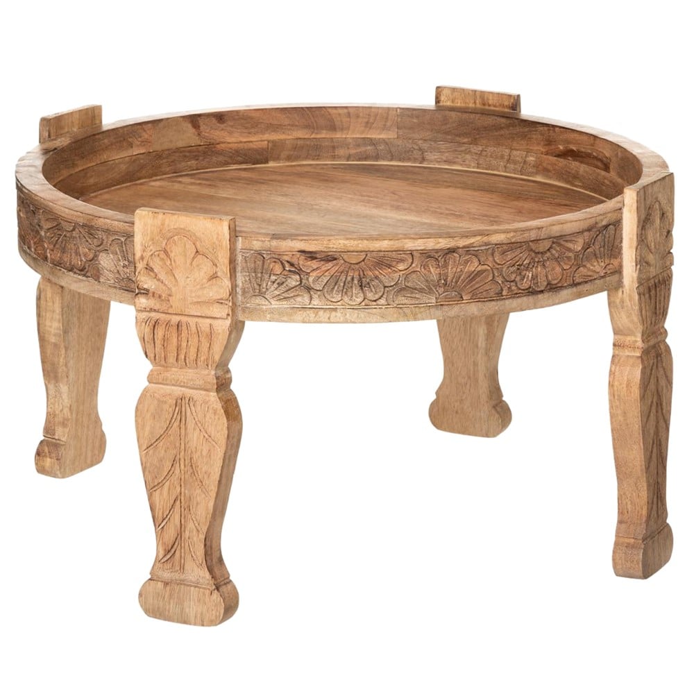 Tavolinë mesi, në material druri dhe formë të rrumbullakët e cila është e përshtatshme për çdo lloj ambienti të shtëpisë tuaj. Pjesa anësore është me gdhendje dhe lule nga jashtë. Kjo tavolinë është e stilit etnik ose bohem. Merrni kohë për të bërë një pushim rreth kësaj tryeze të stilit të jashtëzakonshëm, e përsosur për të ndarë një kohë të mirë me miqtë ose familjen tuaj.