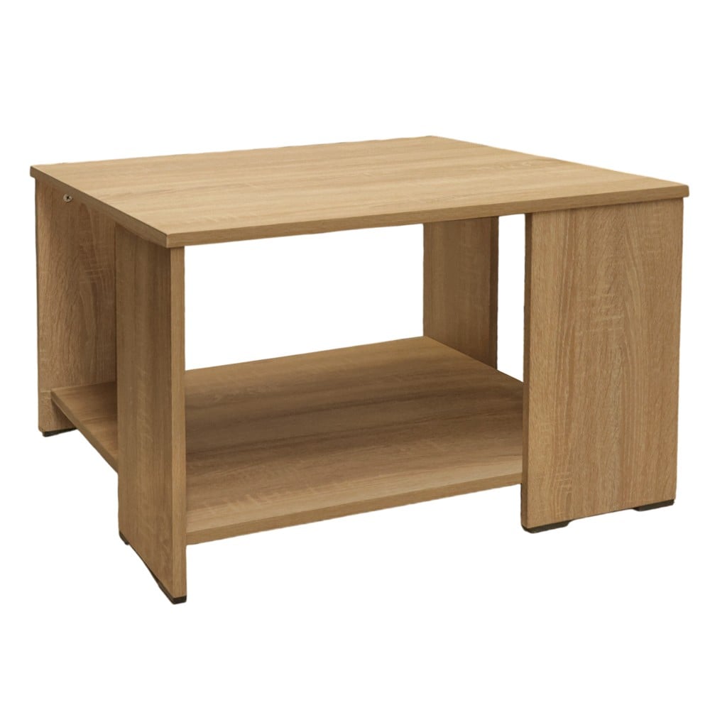 Tavolina është një zgjedhje e shkëlqyer për të ekspozuar objekte të dekorimit ose koleksionet tuaja në një mënyrë elegante. Krijuar nga melaminë me cilësi të lartë me ngjyrë sonoma, kjo mobilje ofron qendrueshmëri dhe një pamje moderne plot elegancë. Me një kombinim të përsosur të formës dhe funksionit, tavolina është zgjedhja e përshtatshme për të shtuar stil në shtëpinë tuaj.