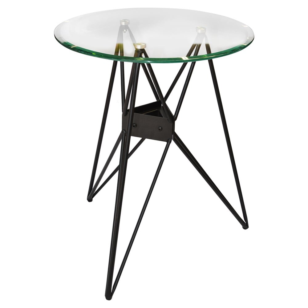 Coffee table, metallic frame and tempered glass 10mm, clear, Ø60 xH70 cm
