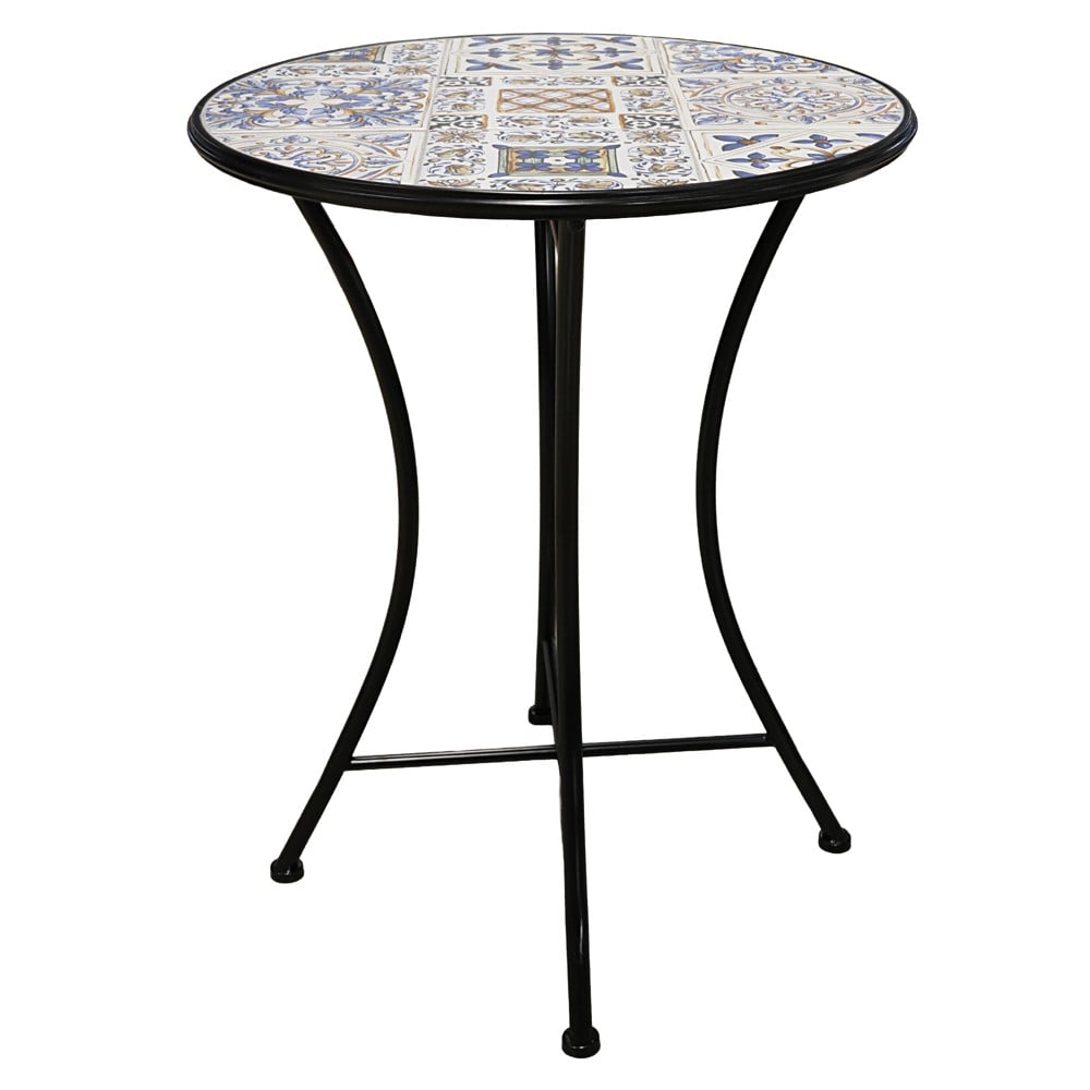 Po vlerësoni:Tavoline Mosaic, metal/qeramike, strukture e zeze, suprine e bardhe/blu, D60xH75 cm