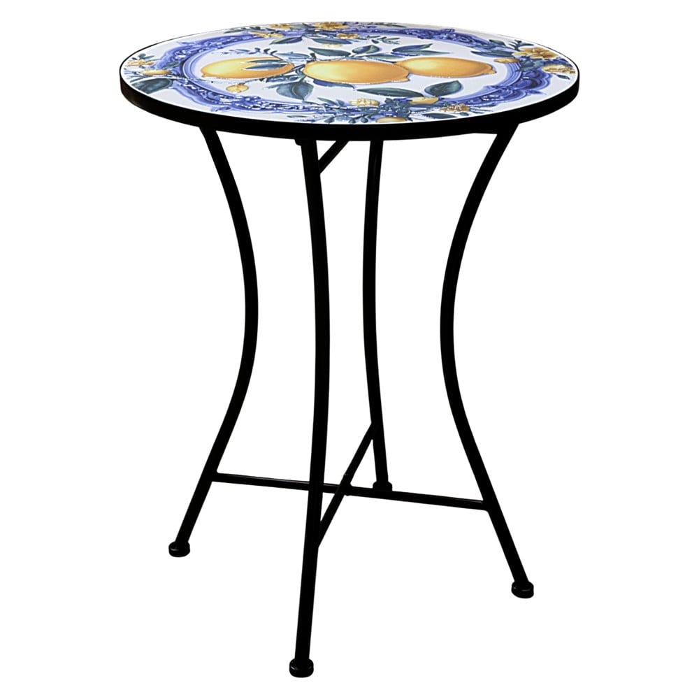 Tavolinë Mosaic me strukturë metalike dhe sipërfaqe qeramike, me dimensione D60xH75 cm. Konstruksioni metalik i zi siguron stabilitet dhe qëndrueshmëri, ndërsa sipërfaqja qeramike me motive limoni i jep tavolinës një pamje të freskët, dekorative dhe të gjallë. Dizajni Mosaic kombinon funksionalitet dhe estetikë, duke e bërë tavolinën të përshtatshme për ambiente të jashtme ose të brendshme, si oborre, kopsht ose ballkone, dhe duke shtuar një detaj artistik dhe veror në hapësirën ku vendoset.