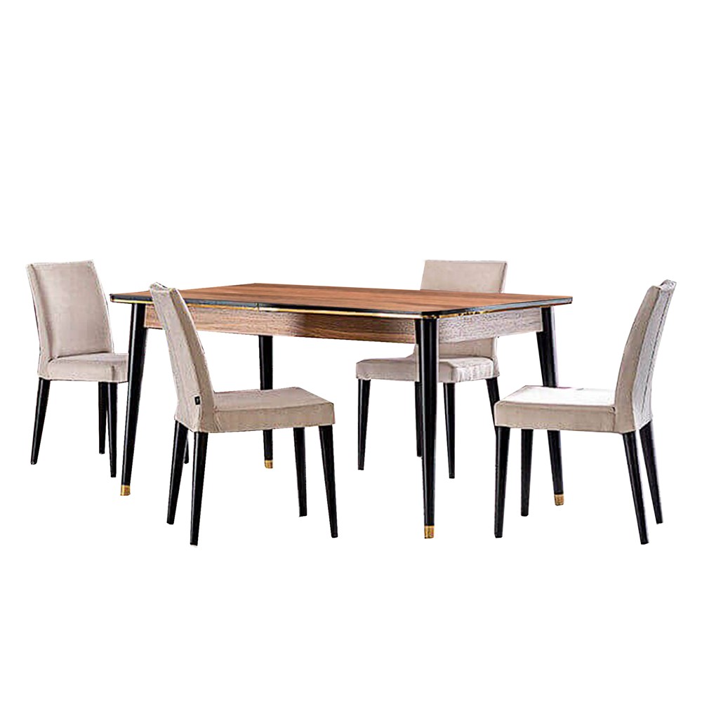 Tavolinë ngrënie dhe 4 karrige, Helen, zezë/arrë, tavolina: 150-190x90xH75 cm; karrigia: 40x50xH80 cm