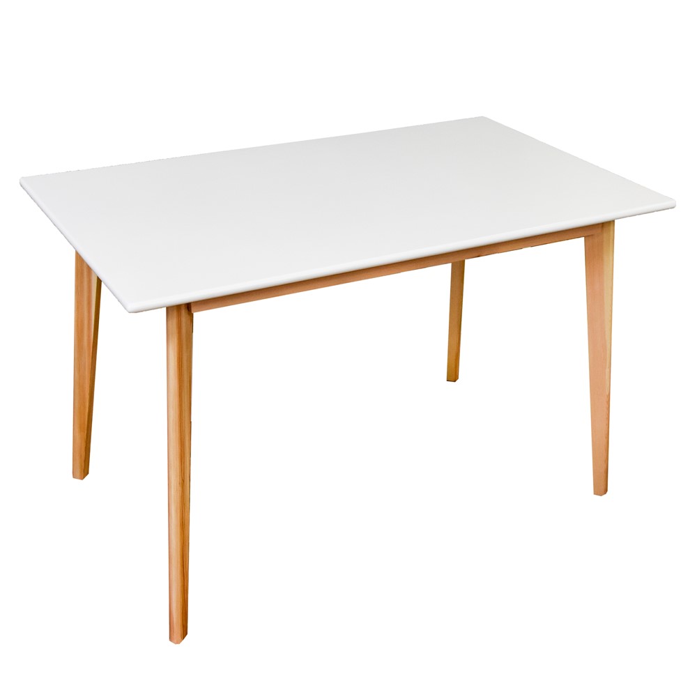 Tavolinë ngrënie, këmbë dru pishe, syprinë mdf dhe melaminë (18mm), e bardhë, 120x70xH75 cm